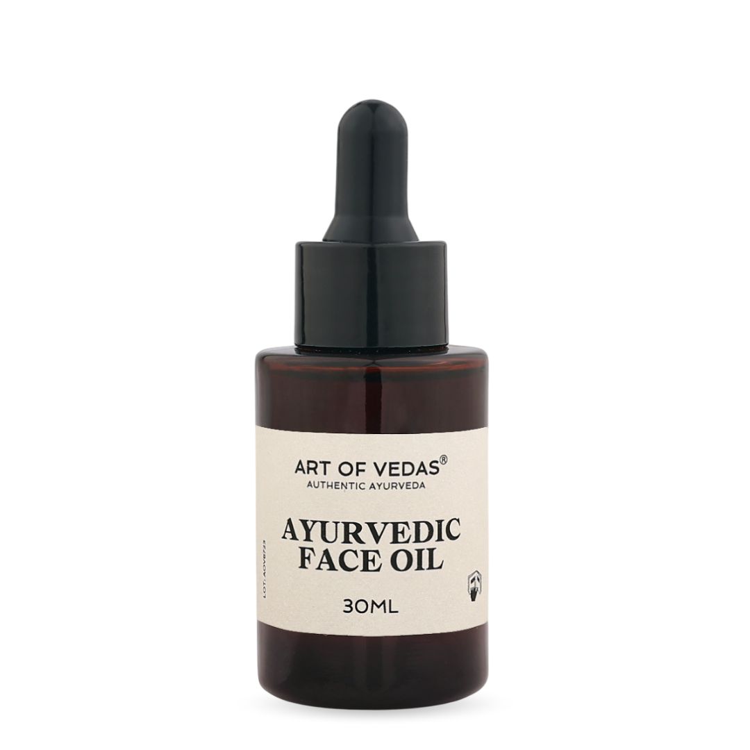 Deze Ayurvedische gezichtsolie van Art of Vedas is samengesteld op basis van sesamolie als voedende basisolie, aangevuld met een blend van klassieke Ayurvedische kruiden die al eeuwenlang worden gebruikt voor huidverzorging. De formule bevat onder andere extracten van de Nyagrodha-familie (vijgenboomsoorten), Triphala (Amla, Haritaki, Bibhitaki), Manjishtha, sandelhout en vetiver.